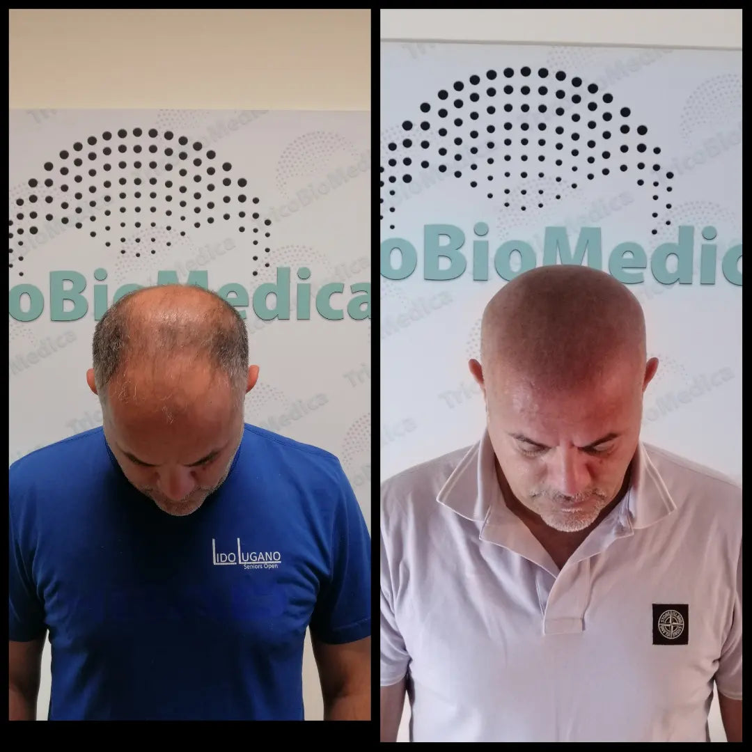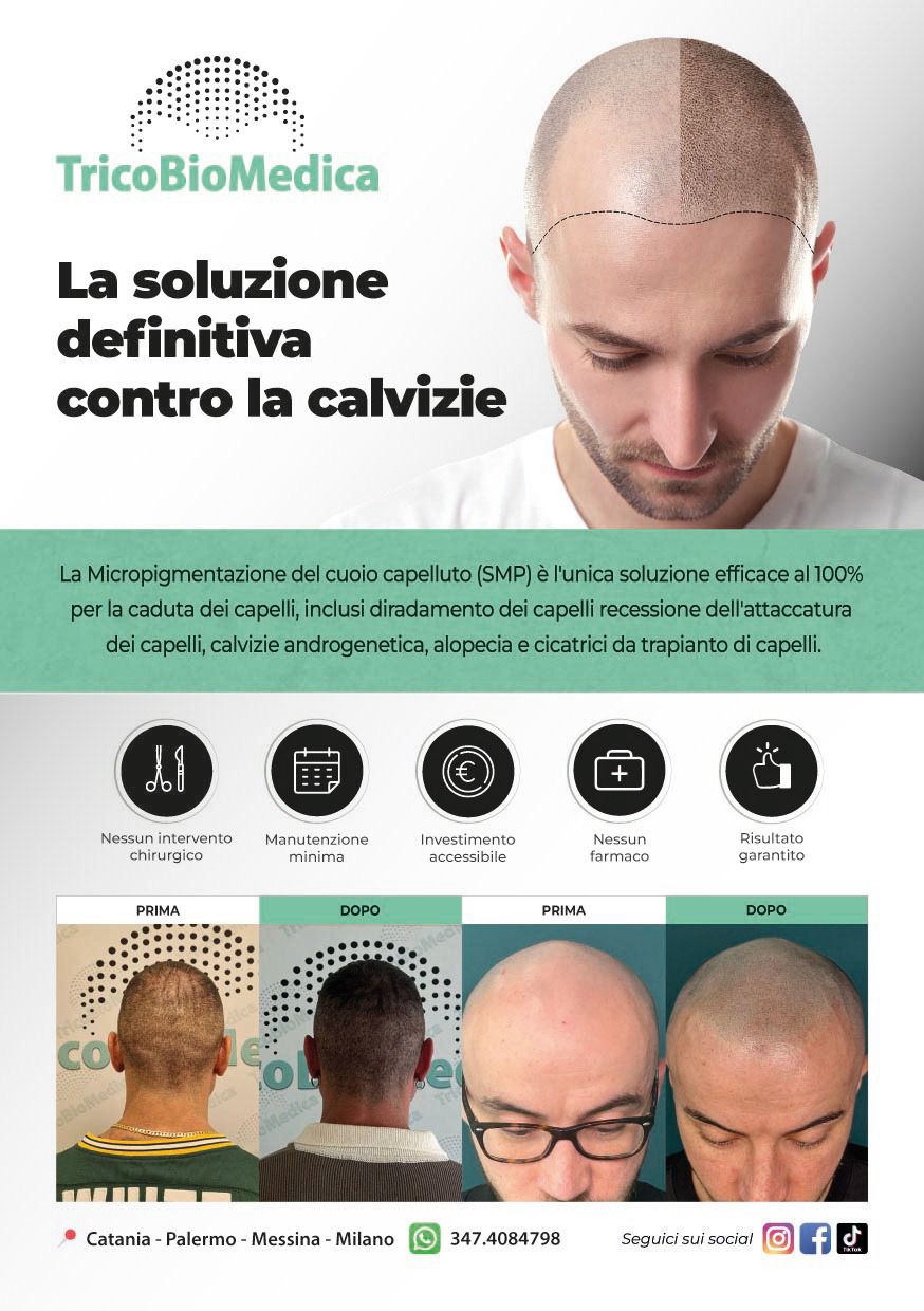 Grazie alla Tricopigmentazione con Tricobiomedica è possibile riprodurre all 100% l'effetto dei capelli rasati dove la calvizie è presente, questa tecnica maschera e copre le zone dove i capelli mancano.